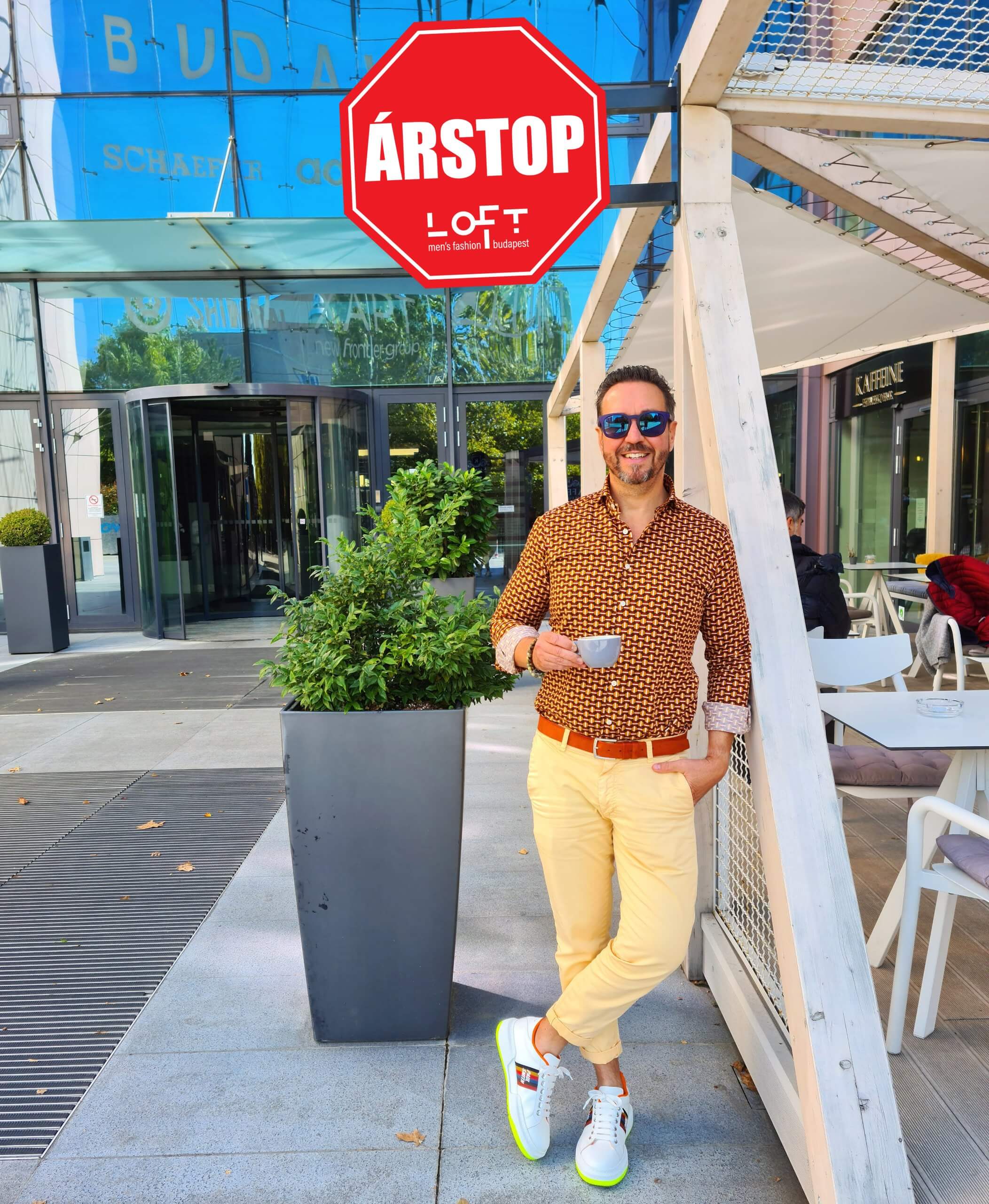 Minden terméknek van egy beérkezéskori, egységes ára. Ez az ár folyamatosan csökkentésre kerül aszerint, hogy az adott designból milyen gyorsan fogynak a méretek. Ezért egyáltalán nem következik abból, hogy aktuálisan találsz 50%-ra leárazott nadrágokat, zakókat, öltönyöket, cipőket, egyebeket az üzletben, hogy az épp a minap kicsomagolt, friss termék is ennyiért menne.
